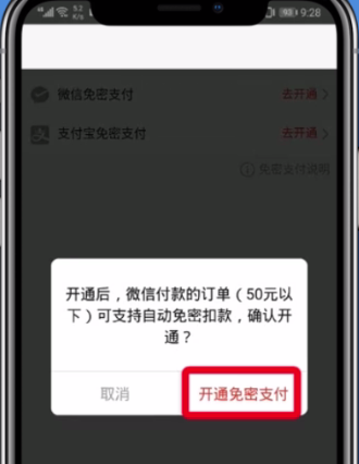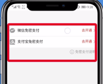 4、点击选择微信或者支付宝免密支付方式,如下图所示: