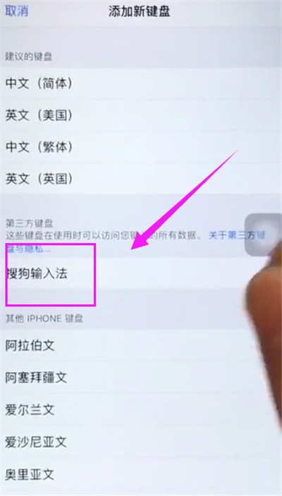 6.点击添加新键盘,把刚刚下载的输入法添加进来就完成啦