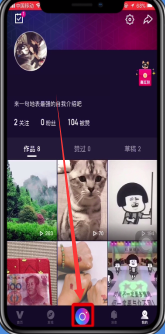 1、进入微视,点击正下方的拍摄图标,