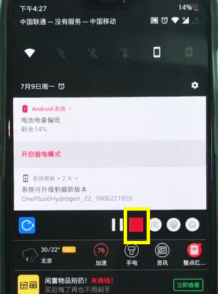 5、然后倒数三秒就可以开始录屏了,完成录屏后,我们从手机屏幕顶端下拉,点击状态栏里录屏大师右侧红色的结束按钮,即可结束并保存录屏。