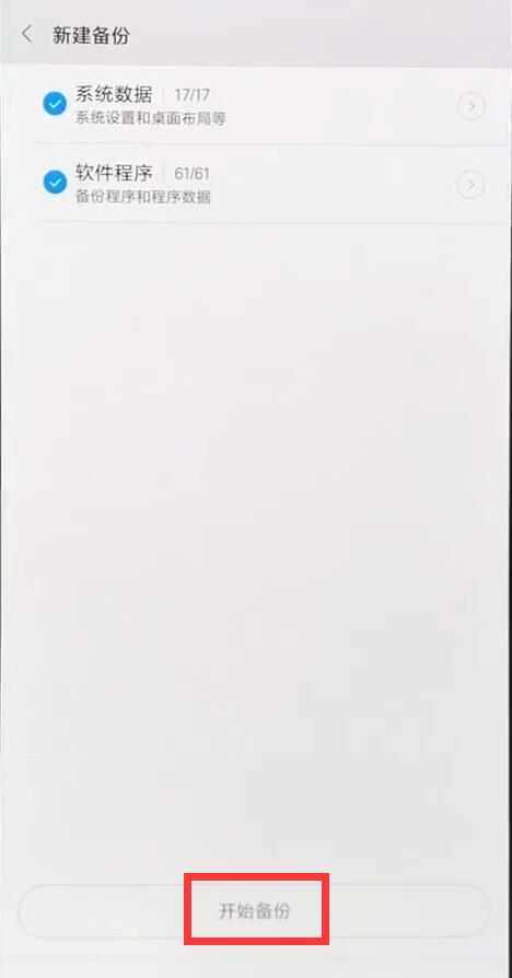 6、点击勾选备份内容,点击【开始备份】即可。