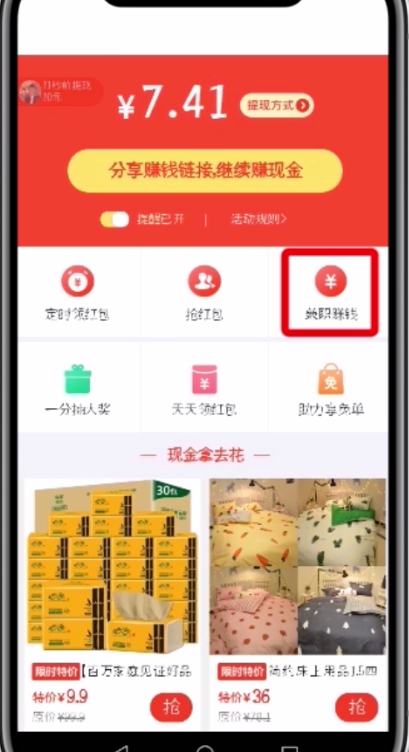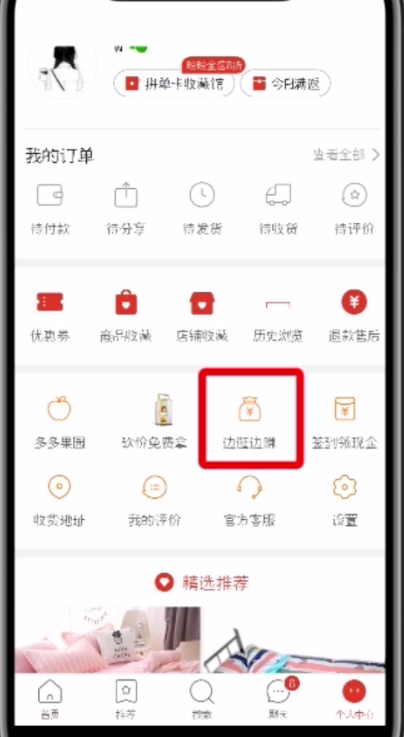 6、点击个人中心,点击边逛边赚,即可提供浏览商品页面来赚红包了
