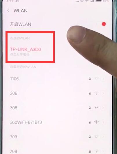 3、点击已经连接的wifi网络