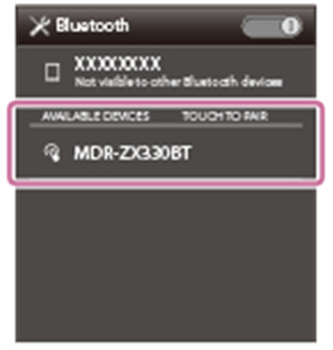 4.此时手机的蓝牙设备搜索列表上会出现耳机的名字,如果没有,请尝试刷新蓝牙功能界面。选择“MDR-ZX330BT”按照手机上显示的说明步骤配对连接。如果需要输入密钥,请输入“0000”。密钥也称“保密代码”、“PIN码”、“PIN号”或“密码”。