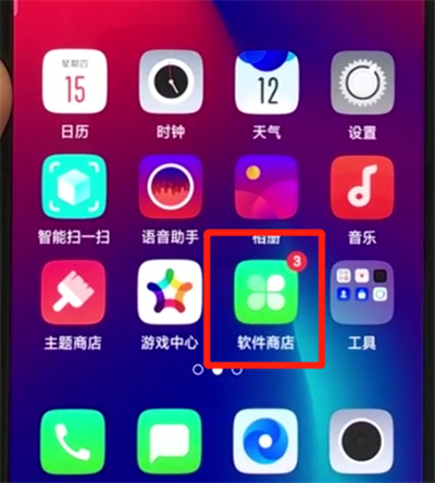 1.首先我们打开oppr17pro手机桌面,然后点击软件商店