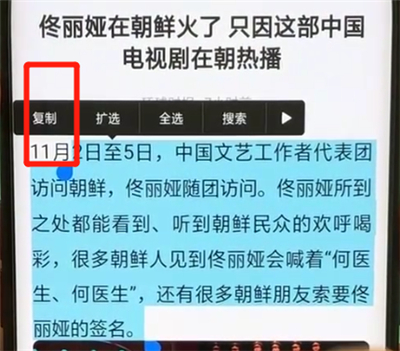 1.首先我们进入你需要复制粘贴的页面,长按选择你需要复制的文字,点击复制
