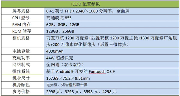 iQOO根据运存和内存的不同主要分为四个版本,价格也略有出入。其中6+128版售价2998元,8+128版售价3298元,8+256版售价3598元,而12+256版售价4298元。虽不能说是白菜价,但是从它的定价中我们可以感受到满满的诚意,快去各大商城为自己预订一款吧!
