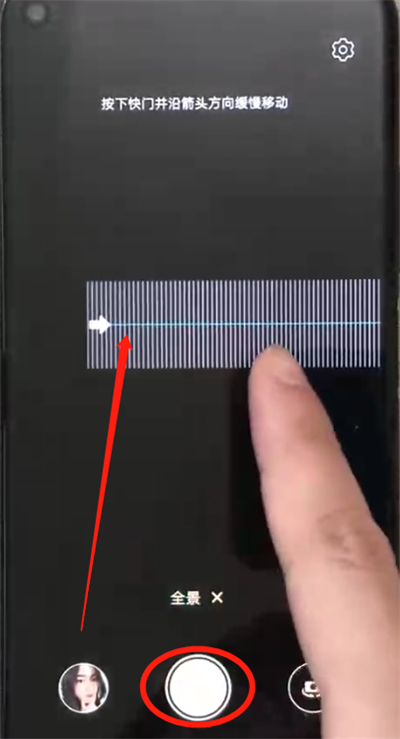 2.点击全景按下快门键后沿箭头方向缓慢移动即可拍摄全景照片