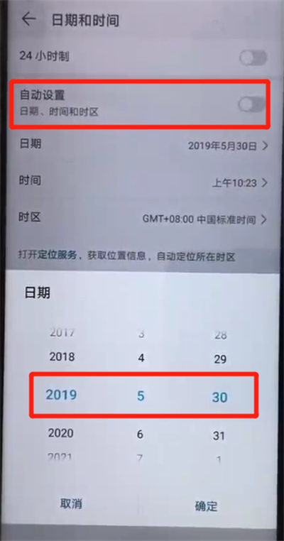 3.将自动设置开关关闭,设定好时间即可调整时间
