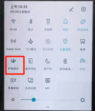 方法二:下拉菜单栏,点亮护眼模式按钮,同样可以开启护眼模式