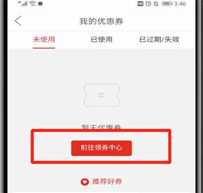 2.点击优惠券,点击前往领券中心即可领取多个优惠券