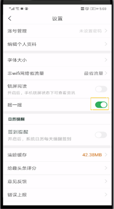 4、在这里即可选择是否勾选摇一摇