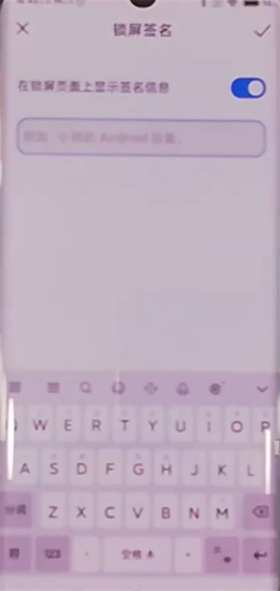 4、点击勾选在锁屏页面上显示签名信息,然后编辑好签名内容点击右上角的√即可