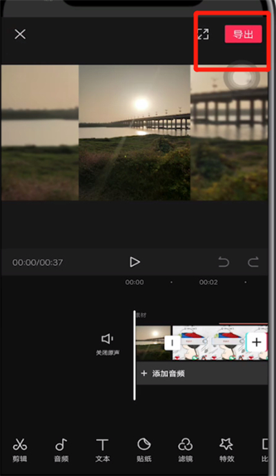 2.在编辑视频页右上角有一个向上的箭头,点击导出就可以啦