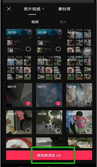 2.选择一个视频,点击添加到项目