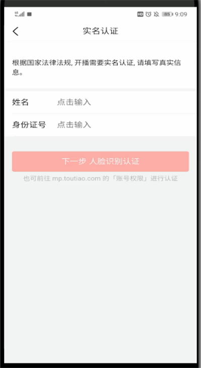 5、输入信息实名认证成功后即可开启直播权限