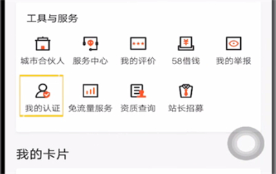 2.往下滑动,在工具与服务栏找到【我的认证】,点击进入