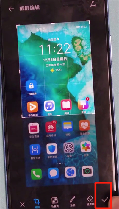 2.点击下方的编辑,勾选区域截图的范围,点击下方的勾即可