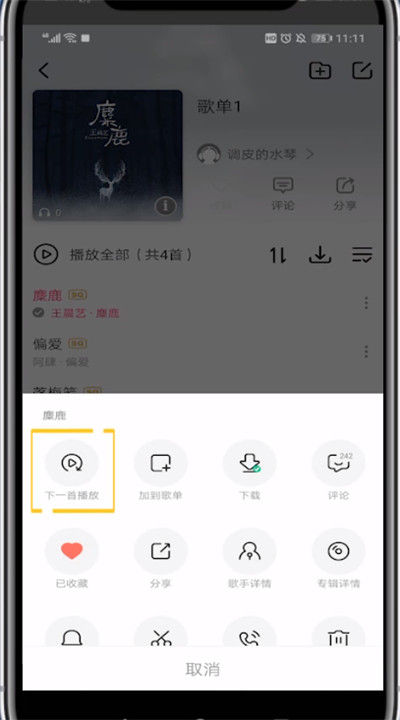 2、打开你要设置的歌单,找到你要设置下一首播放的歌曲
