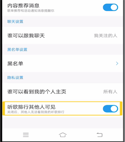 3.将【听歌排行其他人可见】后面的开关关闭即可