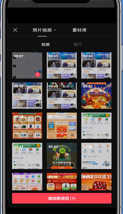 3、选择一段视频点击添加到项目