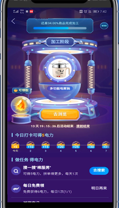 4、进入后即可为商品充电,加工满了后即可免费领取商品