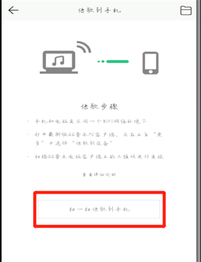 3.点击传歌到手机,点击扫一扫传歌到手机即可