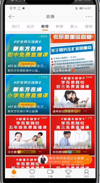 4、选择直播类别,找到直播窗口右上角带有回放两个字即可观看该直播回放