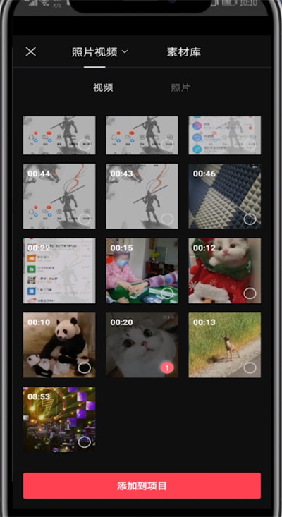 3、勾选一段视频点击添加到项目