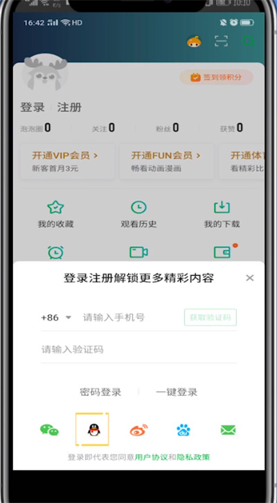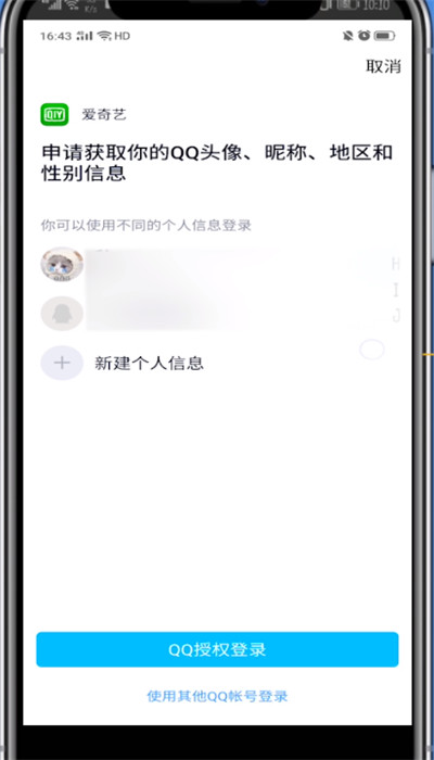 6、点击添加账号,对方输入你的qq账号密码后即可登录你的爱奇艺