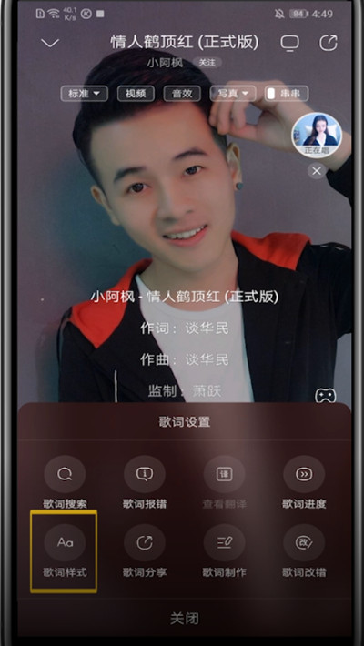 4、点击歌词样式