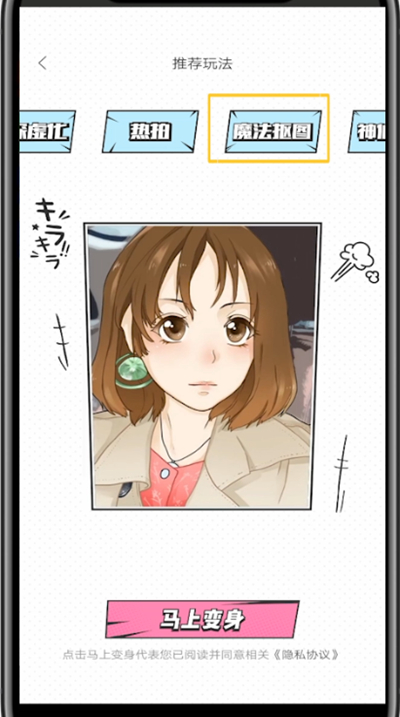 2、点击漫画脸