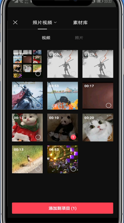 3、选择一段视频点击添加到项目