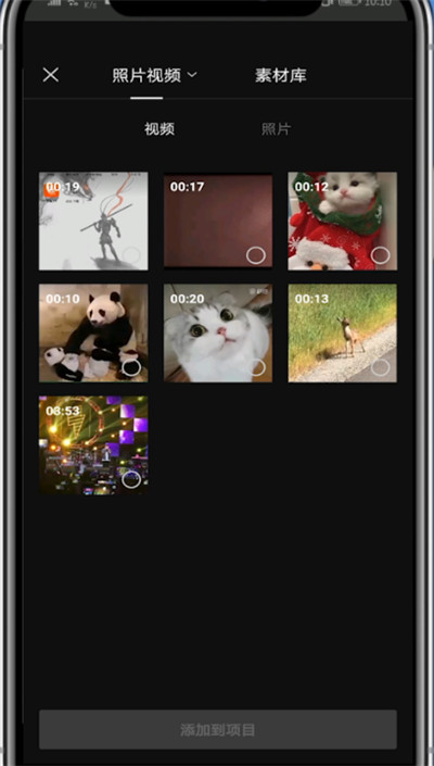 3、选择一段视频点击添加到项目