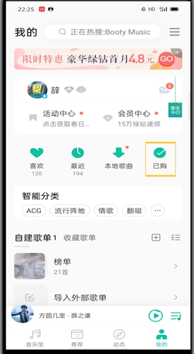 qq音乐怎样单曲购买?首先我们打开qq音乐,点击右下角我的,点击已购,找到你想购买的歌曲点击进入,点击立即支持,支付后即可购买,下面小编为大家带来方法。