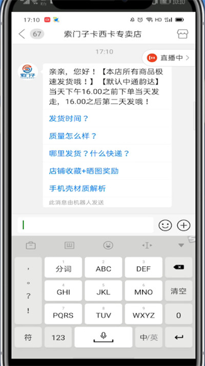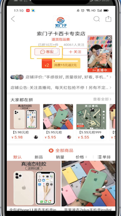 2、打开一个商家,点击客服
