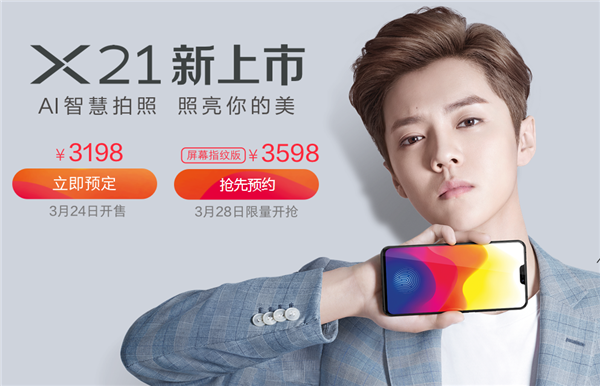 vivoX21为3198元,X21屏幕指纹版为3598元,分别将于3月24日、3月28日上市。