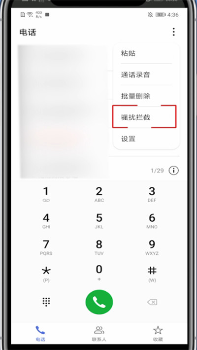怎么查看黑名单的拦截电话和信息?首先我们打开手机中的电话图标,点击右上角的拦截骚扰,点击信息可查看拦截的信息,点击电话可查看拦截的电话,下面小编为大家带来方法。